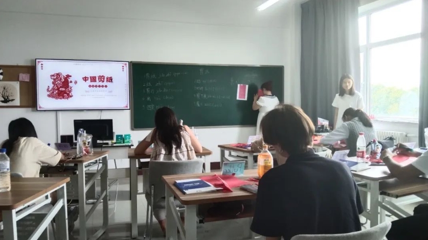 20日下午第一节课准时开始,体验中国传统民间文化艺术–剪纸。剪纸,又名“窗花”或“刻纸”,一种用剪刀或刻刀在纸上剪刻出花纹,制作成具有镂空效果的造型艺术。一把剪刀、一张红纸,剪出的是无穷韵味,凝聚起万千祝福。 格乐大四学子林丽雅同学的作品受到老师的特别赞赏!
