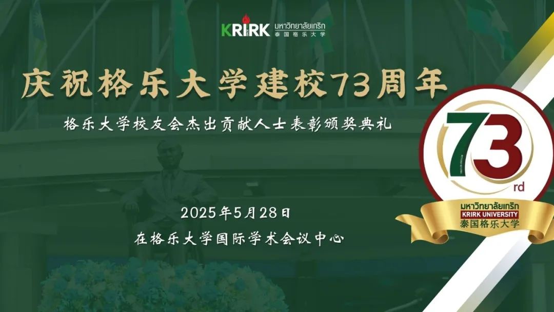 2025年5月28日,庆祝格乐大学建校73周年庆典活动在格乐大学国际学术会议中心隆重举行。 泰国劳工部秘书长 Aree Krainara 阁下亲临活动现场,并参观了位于曼格拉布克大楼的校史博物馆。格乐大学校长Prof Dr.Krasae Chanawongse 杨金泉教授携大学管理团队、格乐杰出校友、国际学生、友好院校师生共同出席了庆典活动,共同见证了格乐大学具有里程碑意义的重要时刻。