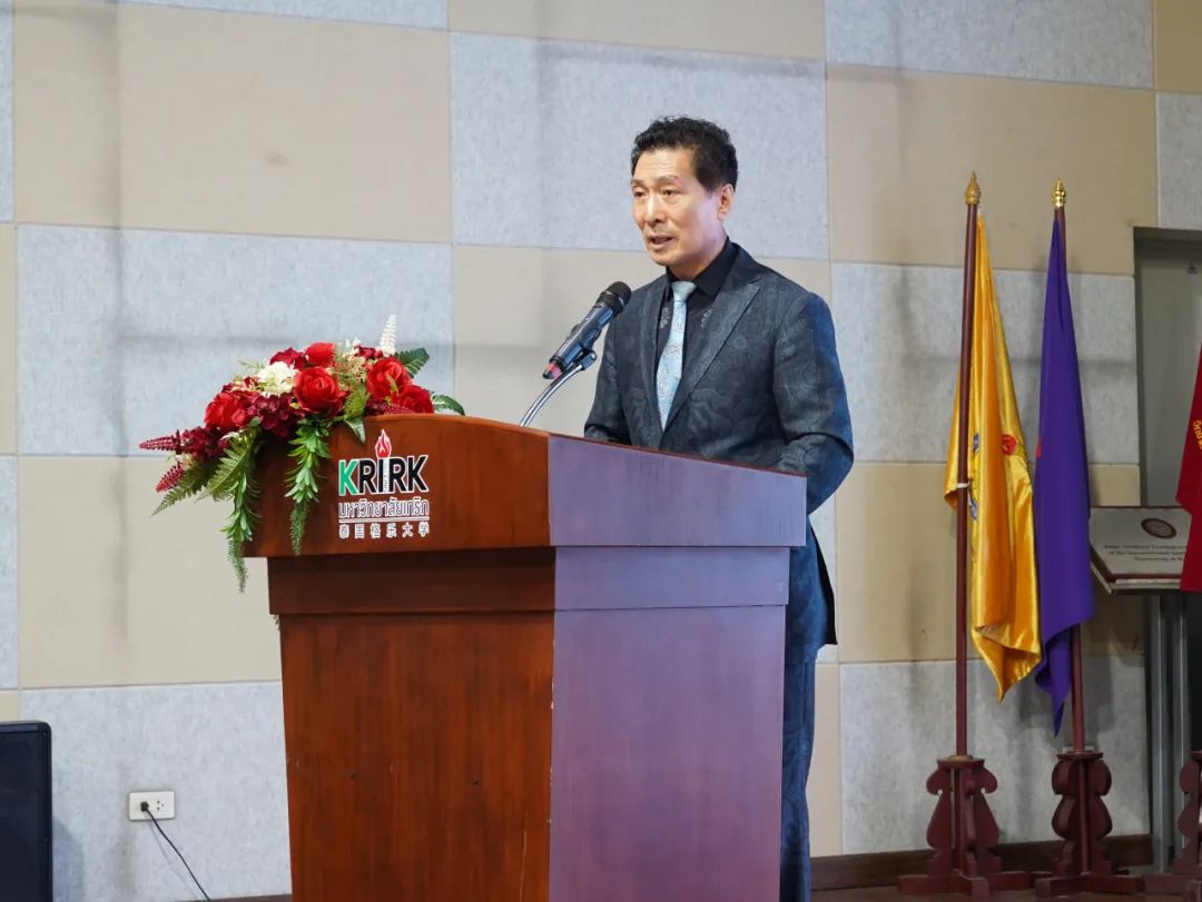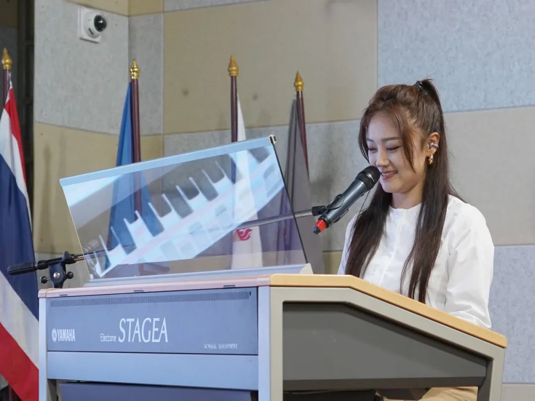 泰国格乐大学外事副校长 Prof.Dr.Jaran Maluleem 致欢迎辞,向中国电子管风琴专家团表示诚挚欢迎。他指出,本次活动是推动我校国际音乐教育交流的重要契机,其为音乐创新注入了新的活力。Prof.Dr.Jaran 鼓励师生积极参与,拓宽国际视野,激发艺术创意,共同推动音乐教育的高质量发展。