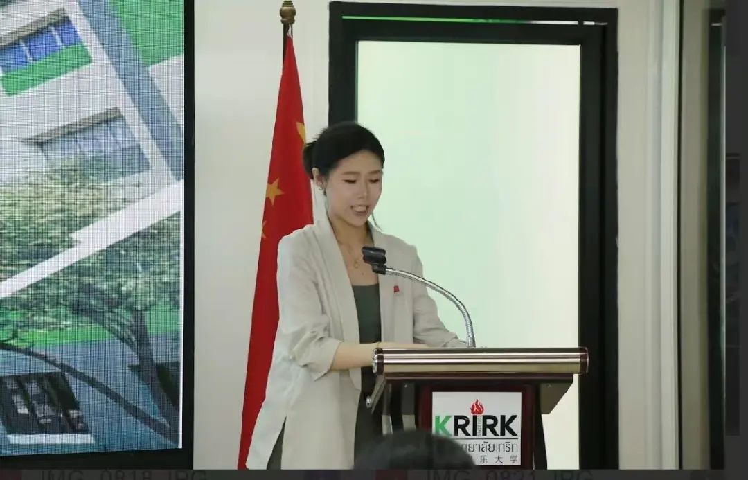 国际学院兼职导师丁玲博士随后以热情洋溢的泰语问候“萨瓦迪卡”开场,她亲切地说:“非常高兴能以‘家人’的身份,欢迎杭州医学院的师生来到温暖的泰国。格乐大学是一个国际化的大家庭,我们的老师都特别友善、耐心,脸上总是带着笑容。有任何问题随时找我们,我们都很乐意帮忙。”丁老师特别介绍了访学期间的生活安排:“大学周边非常便利,各种美食、便利店、购物中心都很近,地铁站就在旁边。课余时间一定要好好体验泰国文化,品尝冬阴功汤、芒果糯米饭等地道美食。”她鼓励同学们:“这段访学时光一定会成为你们人生中独特而珍贵的旅程,希望大家全身心投入,尽情体验,结交新朋友!”