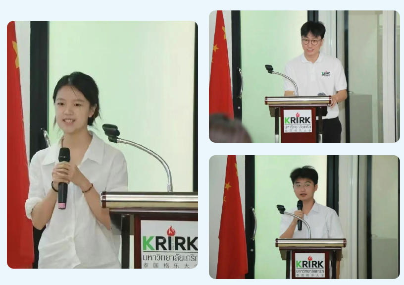 杭州医学院国际交流处马晓玥老师在发言中感谢格乐大学的热情接待。她表示:“此次访学是杭州医学院推进国际化办学的重要举措,相信同学们一定能收获知识、增进友谊。”随后,杭州医学院的同学们依次进行了自我介绍,并表达了对即将开启的访学生活充满信心与期待。其中,两位研究生还介绍了自己目前正在开展的科研方向,并表示,希望借助此次访学机会,拓展国际视野、汲取专业养分,同时更深入地了解泰国在公共卫生与医学教育方面的科学理念和实践经验。