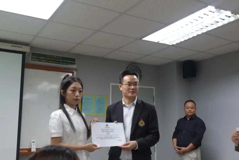 随后,罗勇副校长为全体16名学员颁发了结业证书,正式认可并祝贺他们顺利完成本次交流学习,肯定了他们在跨文化环境中的努力与成长。