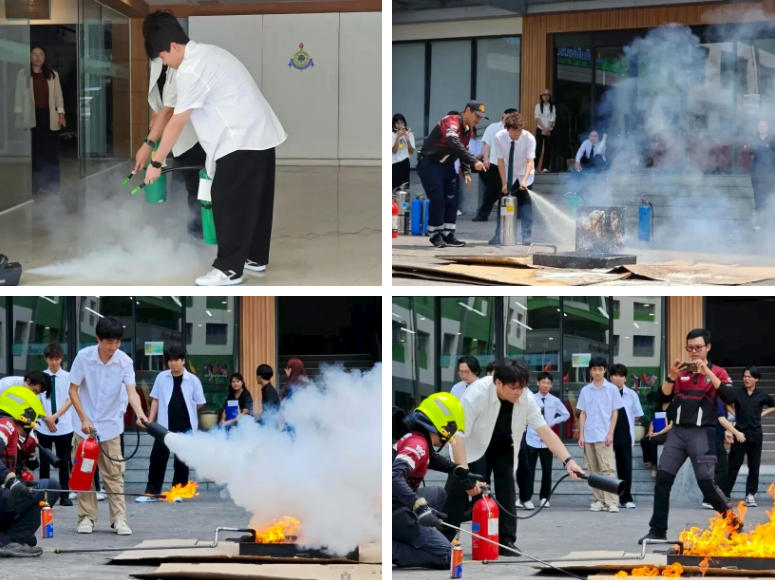 现场设置模拟火源,师生在消防人员指导下进行灭火体验,真实感受扑救过程,提升应对初期火灾的实操能力。